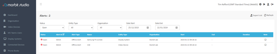 Clicking each alert listed will open up the device shown, so that further information can be gathered, or actions can be taken.